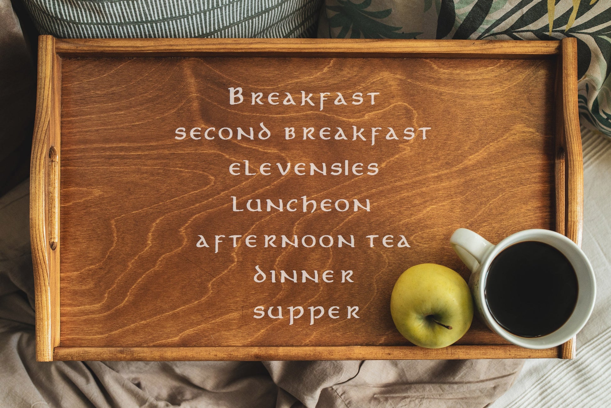 Hobbit Daily Meals Schönes Serviertablett mit Beinen LOTR Second Breakfast Club Kartoffeln Taters