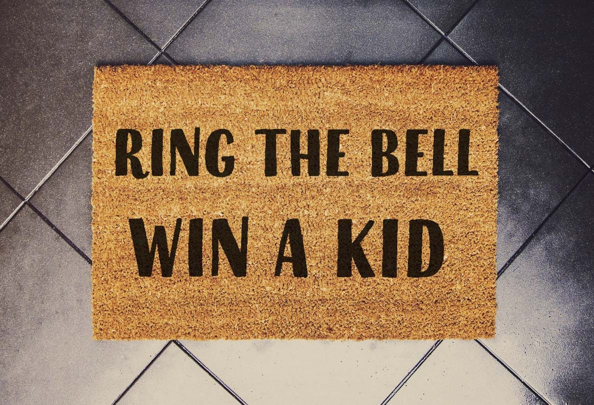Fußmatte mit einem lustigen Zitat Modell: RING THE BELL WIN A KID